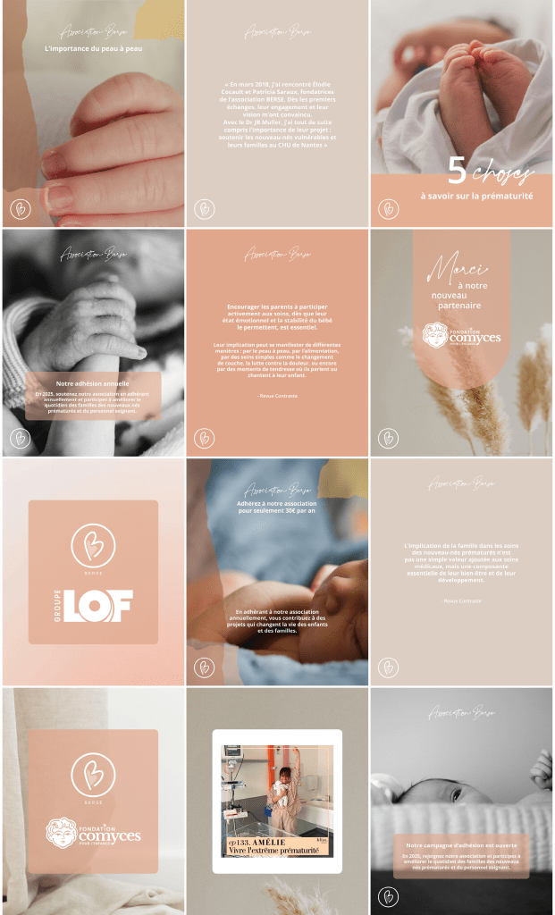 For the past year, I’ve been working with Association Berse in developing their presence on Instagram, LinkedIn, and through its newsletter, as well as creating all of its digital and print communication materials. This association, dedicated to supporting families of premature newborns, needed both online and offline visibility to share its mission with the widest possible audience.