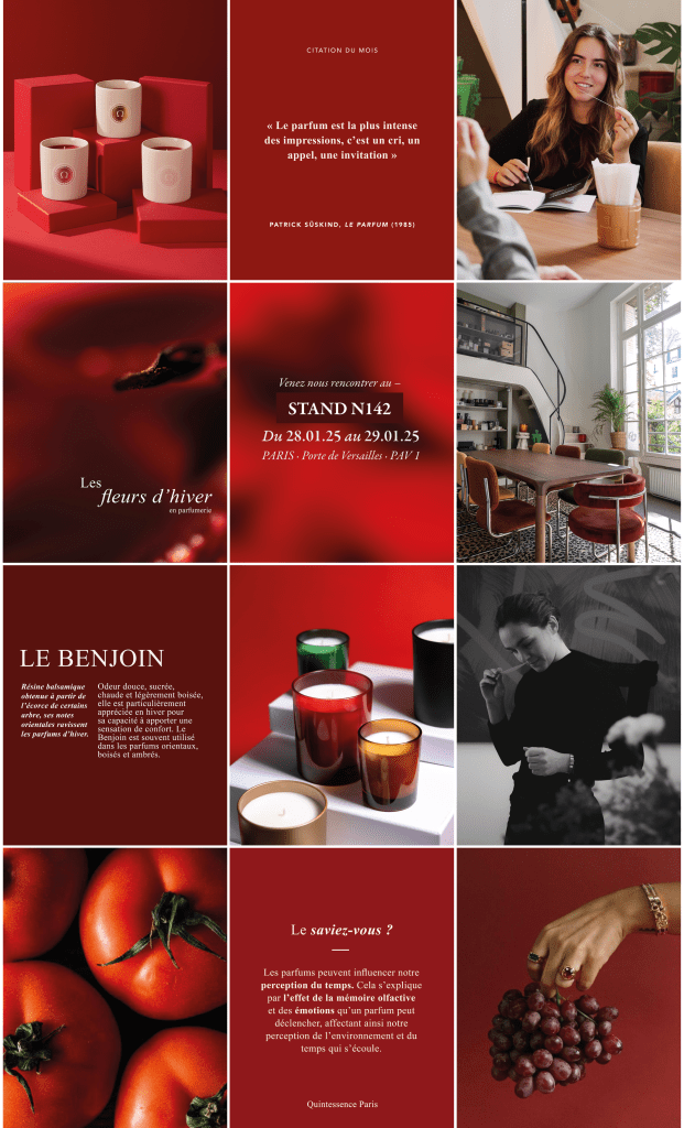 I’ve been working with Quintessence Paris, a brand dedicated to creating exceptional and refined scented products, on developing their Instagram feed and stories, with the goal of increasing brand awareness and reaching a wider audience through a B2B approach.